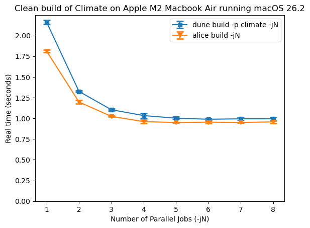 This post covered parallelising the builds of individual files within a single Alice package, but I’m yet to allow building multiple packages in parallel. There’s also more IO which Alice performs, mostly related to generating and copying files, which could possibly be parallelised.